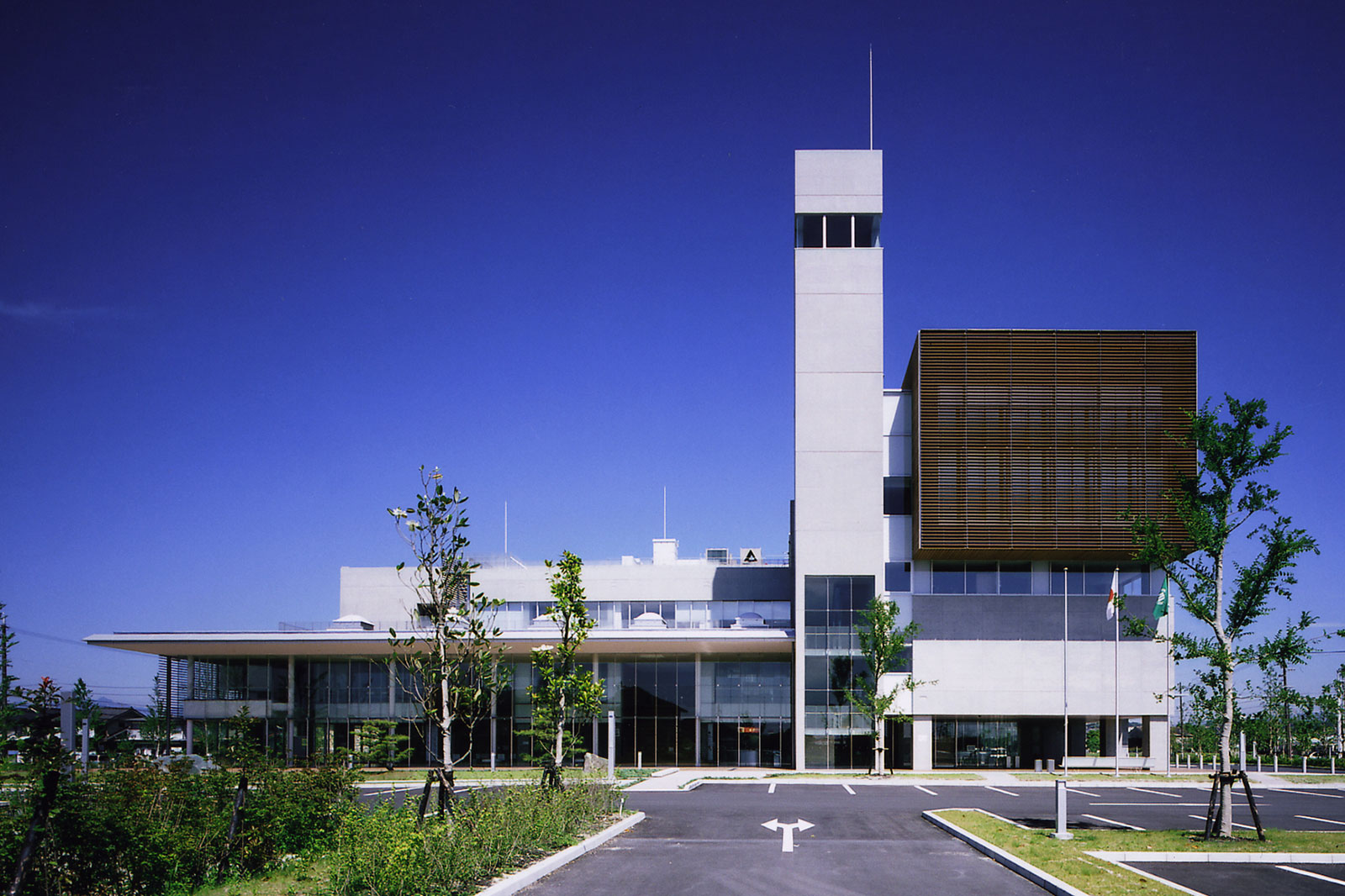 海抜0mに近い敷地において水害・地震時にも機能を維持するために、地盤改良・基礎免震工法を採用し、1階を駐車場と町民ホール、2・3階に執務室、4階に議会部門を配置する構成となっています。