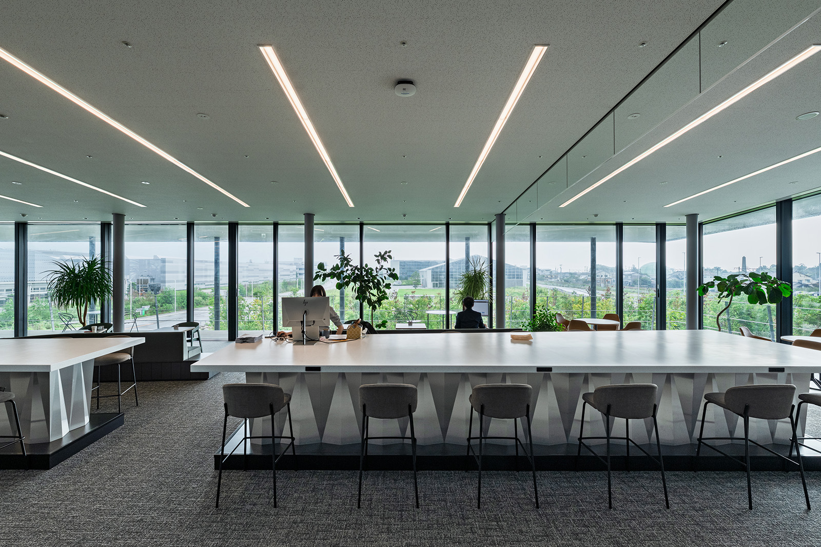 黒部に伝わる屋敷林から着想した「杜(もり)の中で働く」をコンセプトにした環境共生型のワークプレイスです。