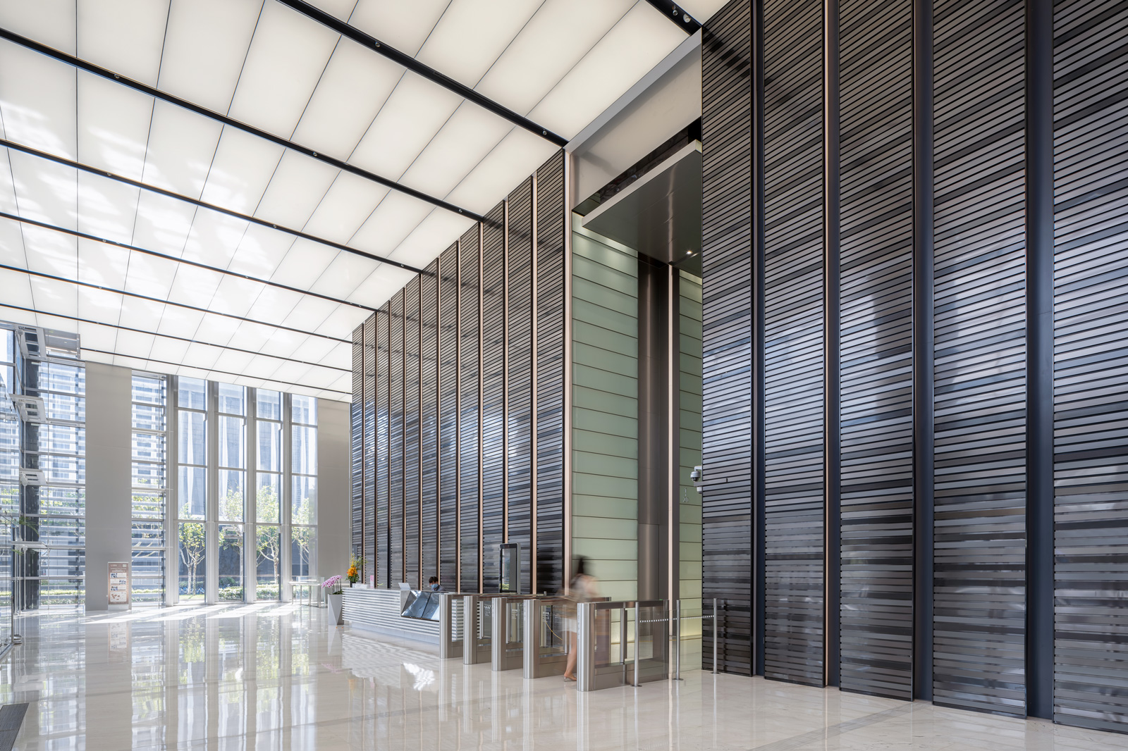 外装デザインは、繊細な編み目模様を基調とした「Textile Filter」をコンセプトに採用。ユニット分割とディテールに変化を加えることで、3つの機能に共通するデザイン要素を持たせながら、全体に統一されたイメージを持たせつつ、場所ごとに異なる表情を生み出しています。