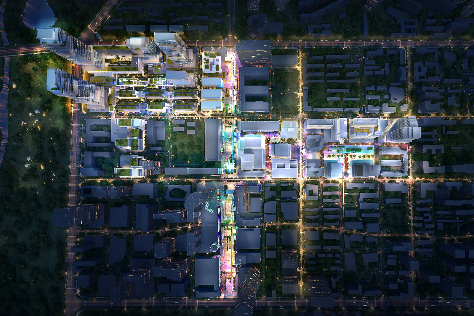 敷地北側に配したタワーは本地区と深圳都心部を結ぶ幹線道路からの視認性を最大化し、基壇部は周辺街区とシームレスに連続させました。