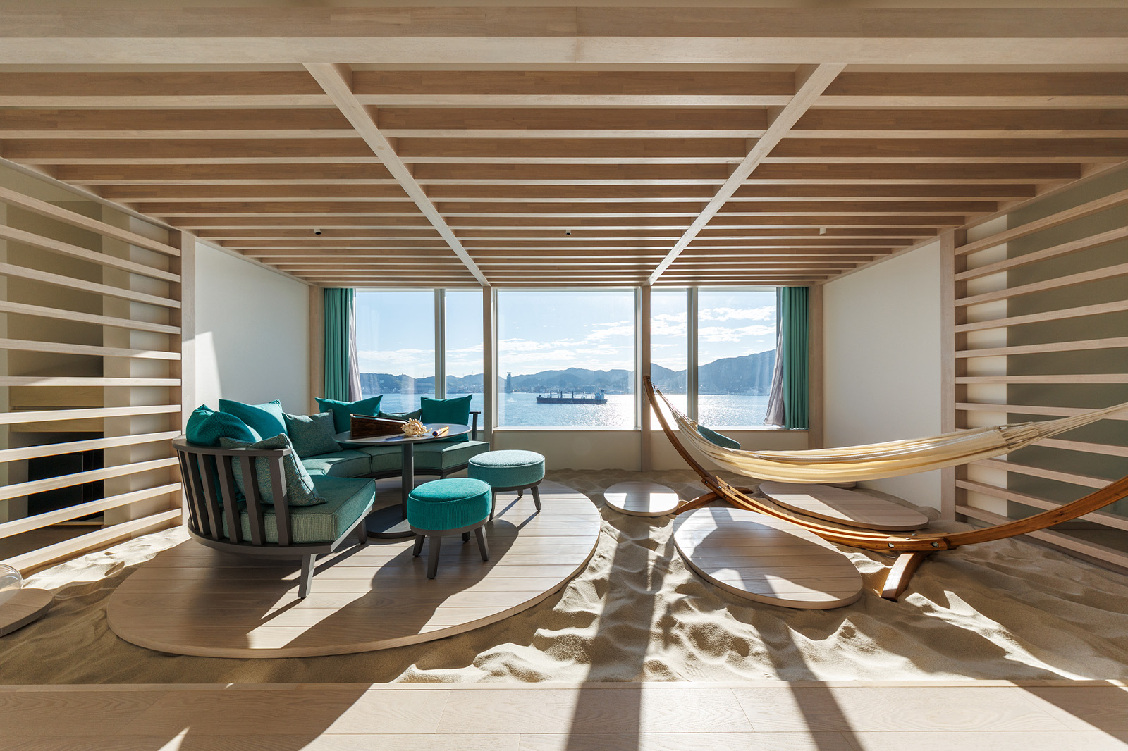 さらに関門海峡の海水を活用した、海水電気分解による無害な淡水をプール濾過に利用する“地産地消型の濾過システム”を導入。塩素臭の少ないやさしい水環境と、地域資源を生かした持続可能性を実現しています。海と共に過ごす体験価値と環境配慮を両立したプロジェクトです。