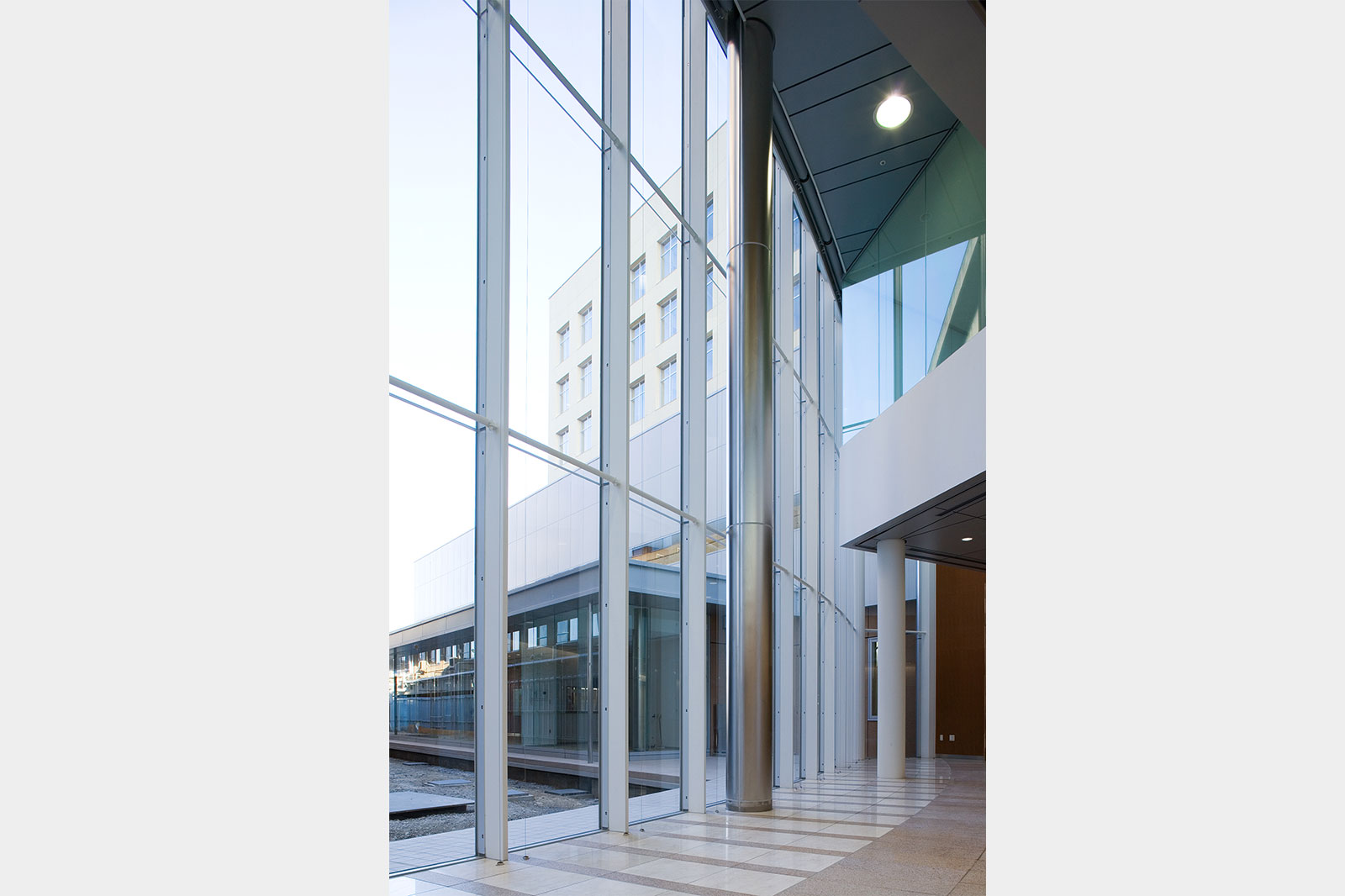 The Gunma Prefectural Cancer Center is designed to provide high level care for the foreseeable future under the cancer center establishment program and also strives to be a kind and warm recuperative environment for the patient. The need to continue operations during the rebuilding required to build the new hospital on the western edge of the site around the existing facilities. The plan utilizes the site freed from the old structure for circulation corridors separated between patient and medical staff to facilitate future changes. the ward rooms have 3.2m high ceilings creating a bright welcoming environment. The next step will be to begin demolition of the old hospital and complete landscaping to create a "hospital park" where man and nature exist in harmony in a recuperative environment taking advantage of the richly endowed 7.2Ha site.