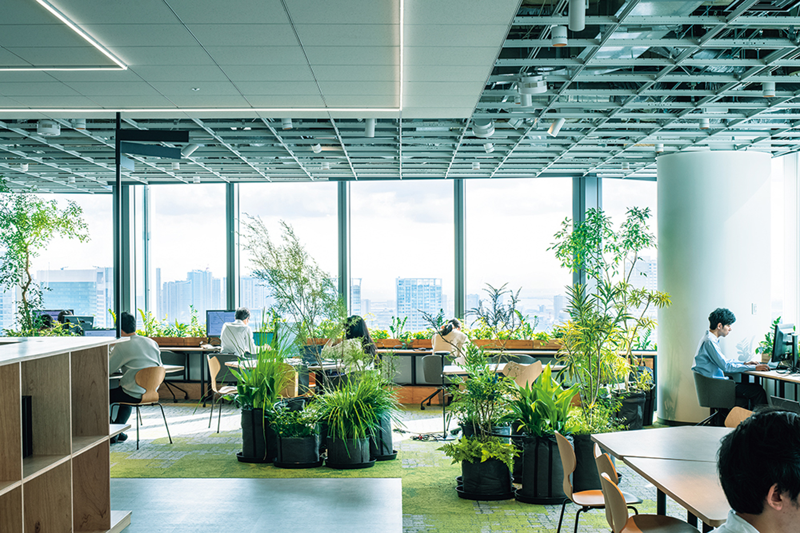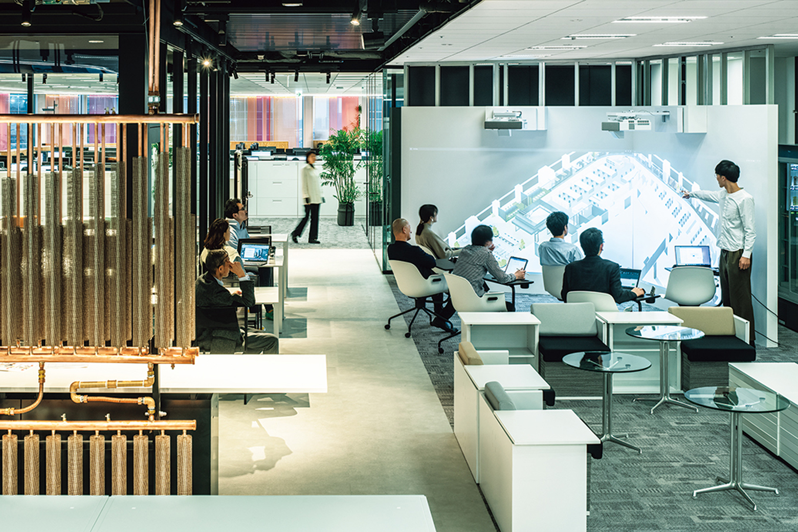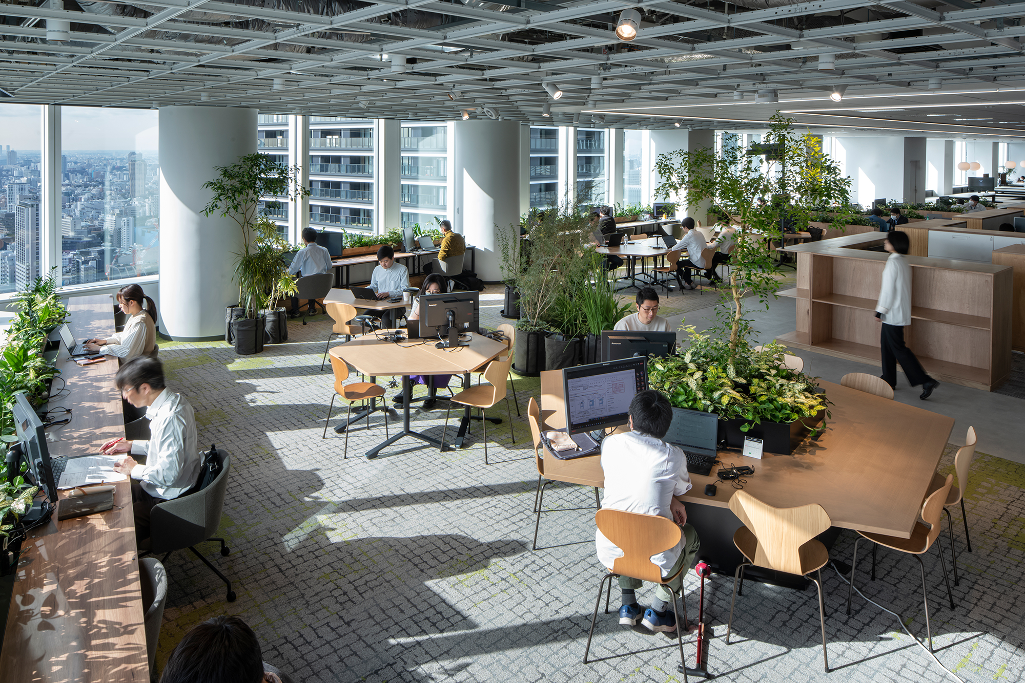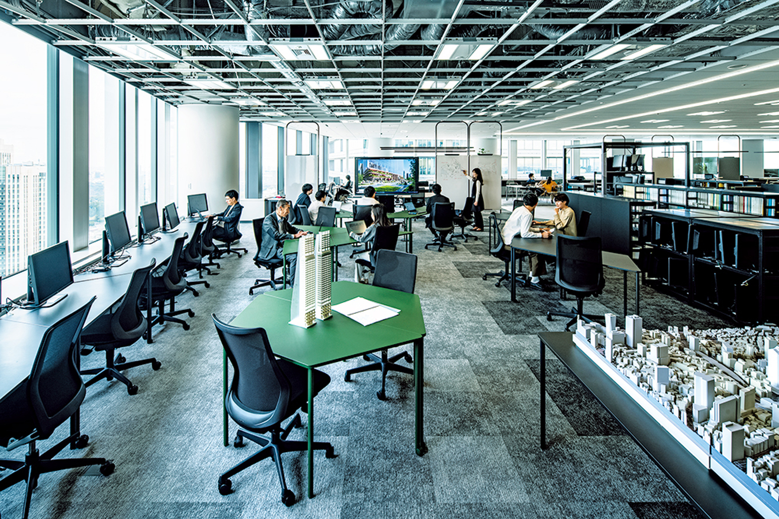 全方位に開けた眺望の中で都市の今を感じながら、建築や都市、環境の未来を創造しています。新しい働き方を実践し、多様な環境を体感しながら、創造を育むワークプレイスです。