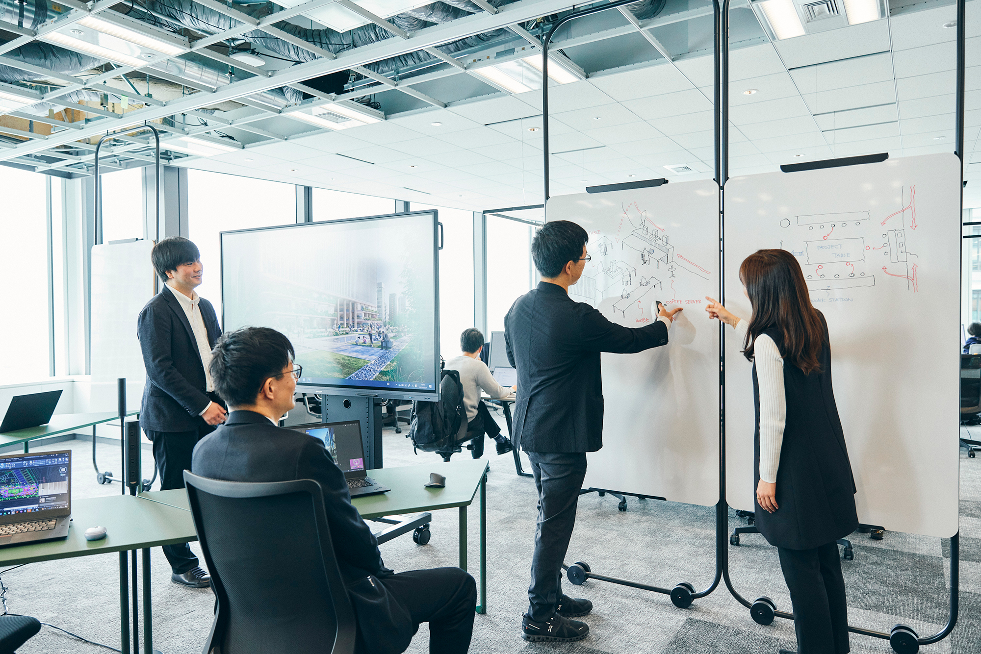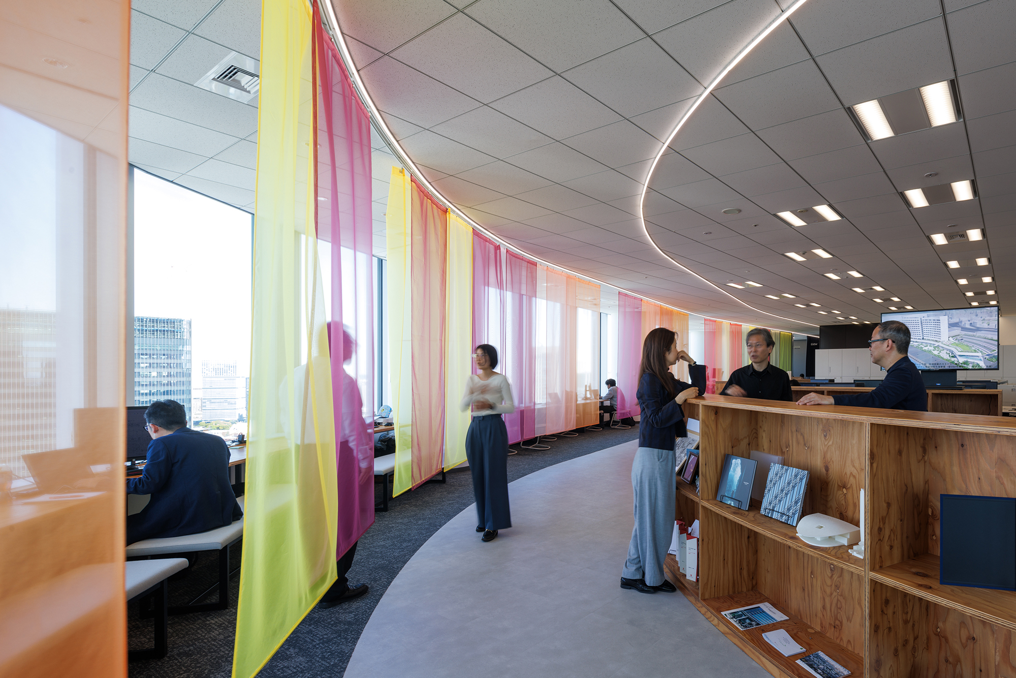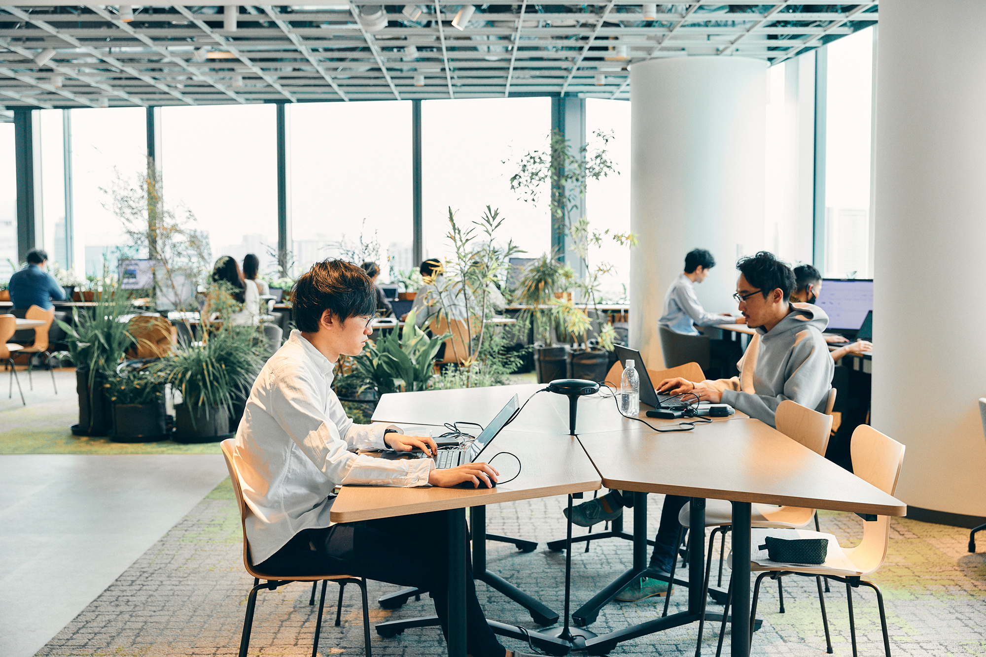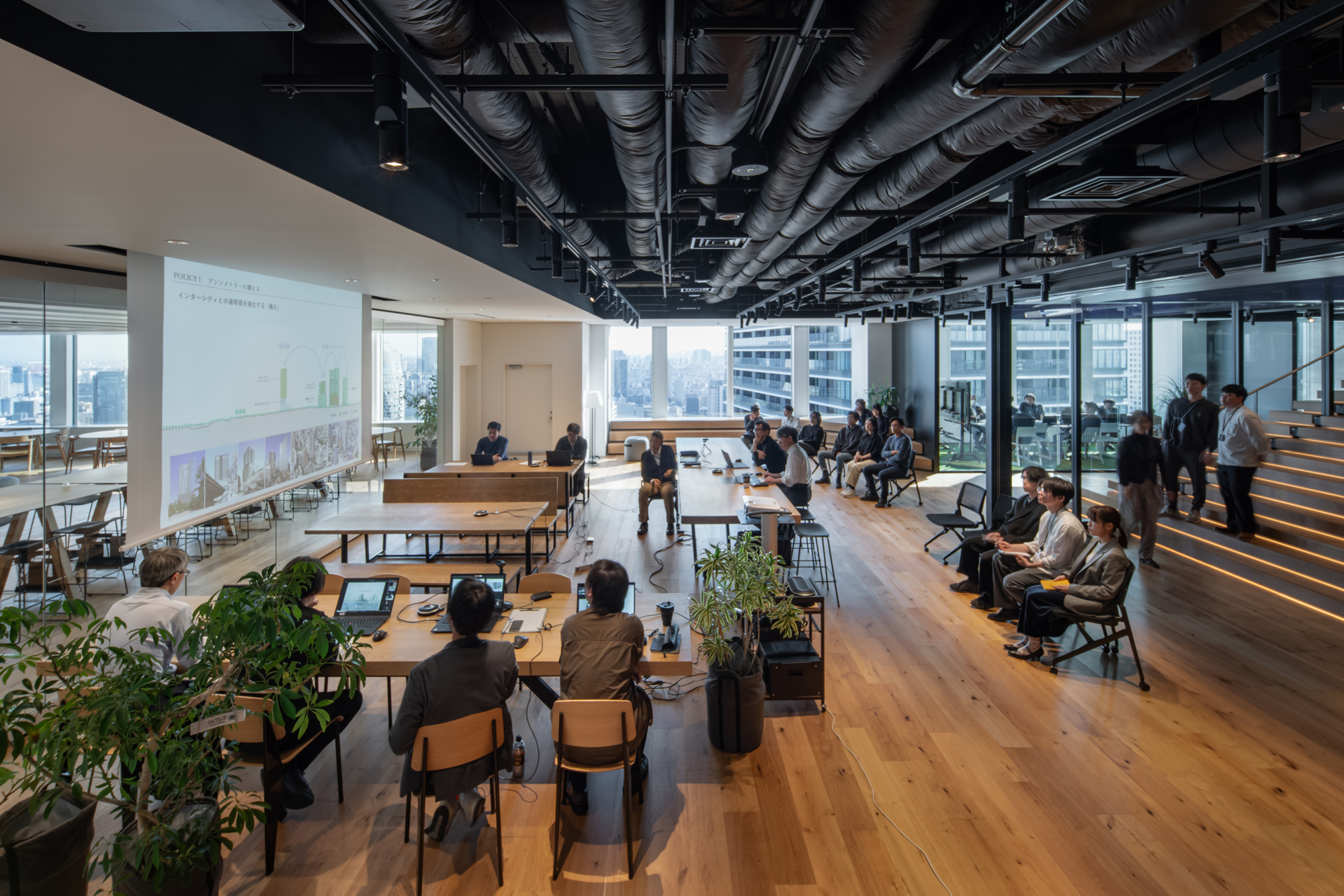 全方位に開けた眺望の中で都市の今を感じながら、建築や都市、環境の未来を創造しています。新しい働き方を実践し、多様な環境を体感しながら、創造を育むワークプレイスです。