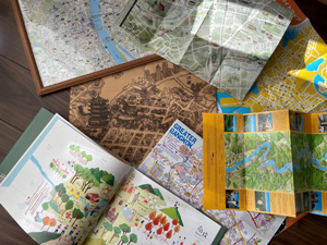 名所や流行りの場所へ出かけるのは大好きです。特に観光地でマップを入手することが好きで、観光案内所でもらえるシンプルなもの、コーヒーショップで買えるおしゃれなものなど、さまざま集めています。違う言語でも、地図として見にくくても、どんな建物やアクティビティがあるかが分かり、こんなまち歩きが出来そうだと想像するだけで楽しくなれます。日頃の資料作成の時も、こんなイラストや情報を入れたら建物の雰囲気が伝わるなと考えながら、集めた地図を参考にしています。