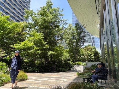 虎ノ門ヒルズのステップガーデンがお気に入りの場所です。天気のいい日は外の椅子に腰かけてランチをしているのですが、多くの人が思い思いに過ごしている様子を見ることができます。木陰で昼寝をしている人、パソコンを広げWeb会議をしている人、階段を駆け上がって遊ぶ子どもなど多様な過ごし方を観察できる場所です。