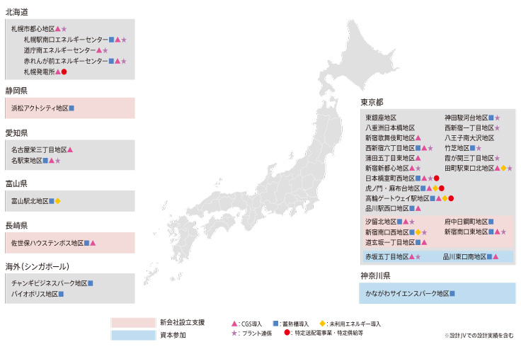 また、豊富な実績のある地域冷暖房では、熱供給事業の事業化などの調査・企画から、地域冷暖房プラントや地域導管の設計・監理に至るまで、さまざまなソリューションをご提案します。