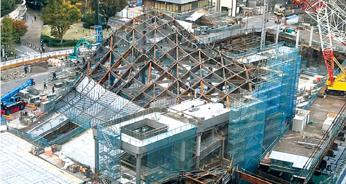 機能と形状、建物とランドスケープをいかに一体的にデザインしていくかは、大きな課題でした。試行錯誤を繰り返した結果、低層部のデザインを担当したヘザウィック・スタジオからグリッド状にデザインされた「ネットフレーム」が提案され、これが解決への突破口となりました。